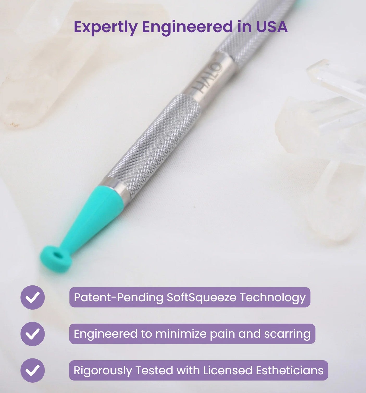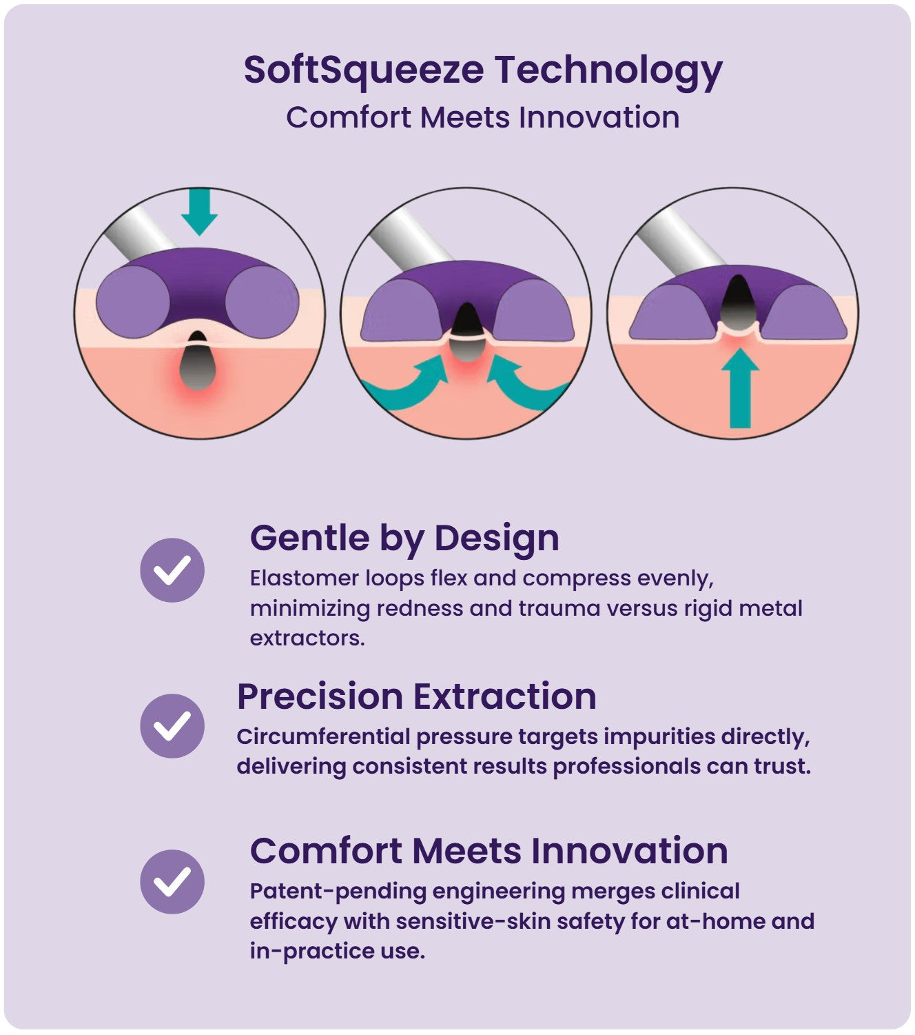 The Halo® is a next-generation extractor engineered for smooth, comfortable removal of blackheads and whiteheads. Designed with SoftSqueeze™ Technology, its ultra-soft elastomer loop compresses gently under minimal pressure, evenly distributing force to clear clogged pores without scraping or irritation. Thoughtfully crafted for everyday skincare, the Halo® is the perfect choice for at-home users seeking a gentle, reliable tool for clear skin.
